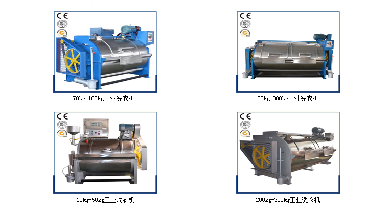 工業洗衣機:按容量大小分為:15kg、30kg、50kg、70kg、100kg、150kg、200kg等系列。該設備是滾筒型,內、外殼采用優質不銹鋼制作而成,平整光滑、耐腐蝕、不損傷織物。該機由內筒、外筒、電機、支撐總成、傳動總成、電器總成組成。結構合理、安裝使用方便。工作原理:由頂置電機、三角膠帶、帶動傳動總成,使內筒作正反轉運轉,通過織物與織物、織物與內筒壁的相互摩擦,達到洗滌效果。機器內置過熱、過載裝置、定時裝置、正反轉控制裝置。外筒門設有安全裝置,若運行中門被打開,機器立即停止運轉,確保機器、操作人員的安全。